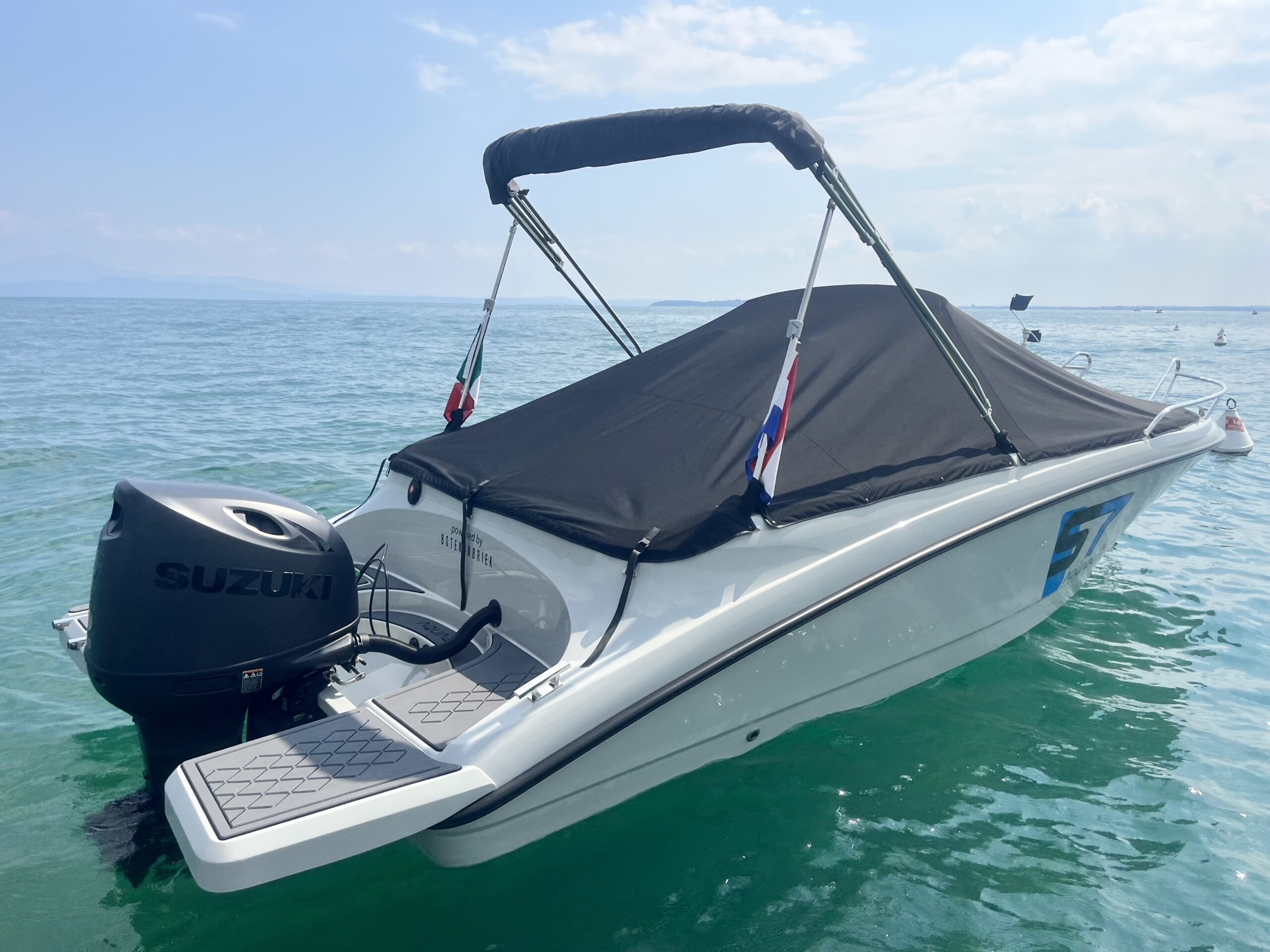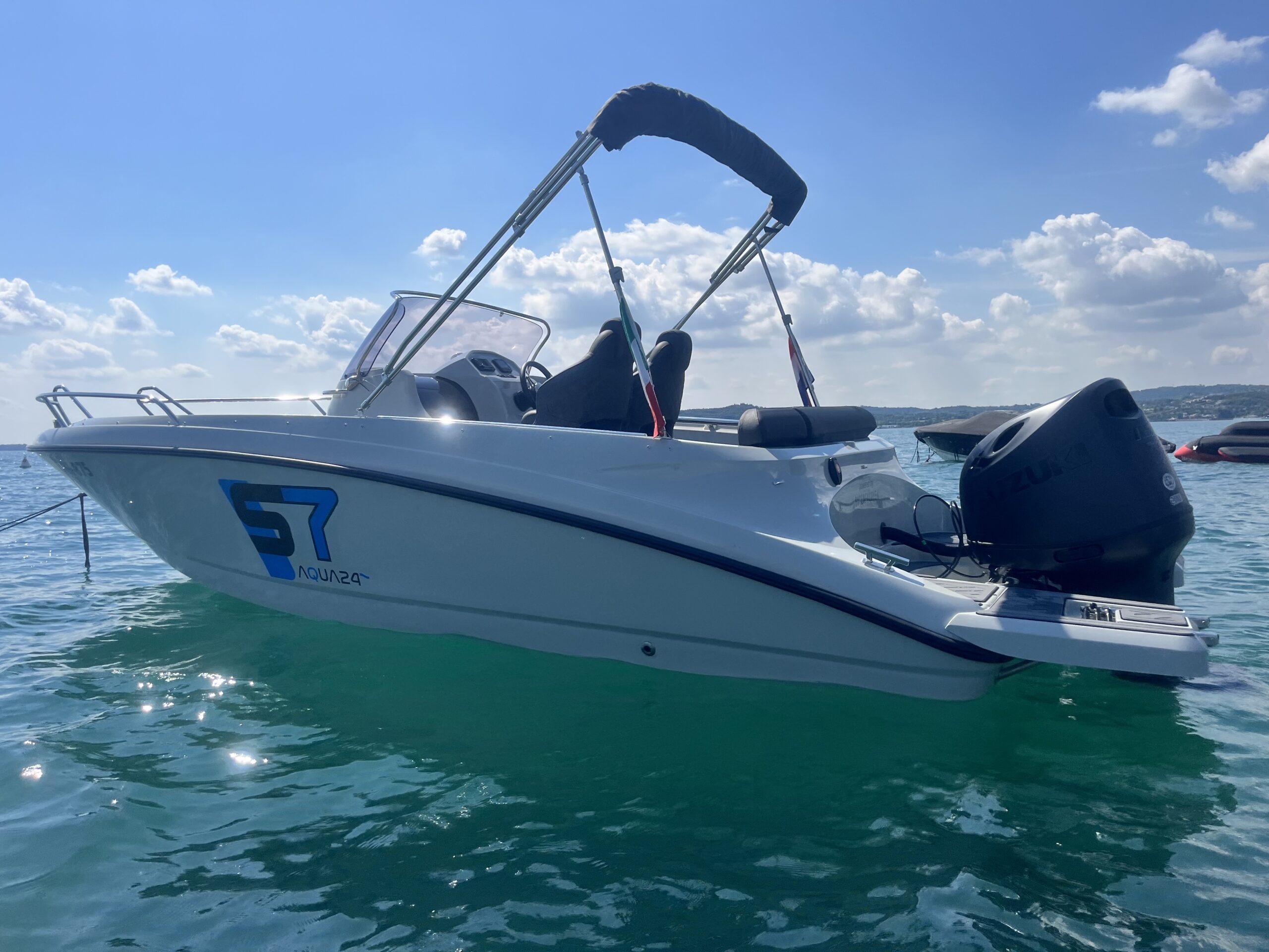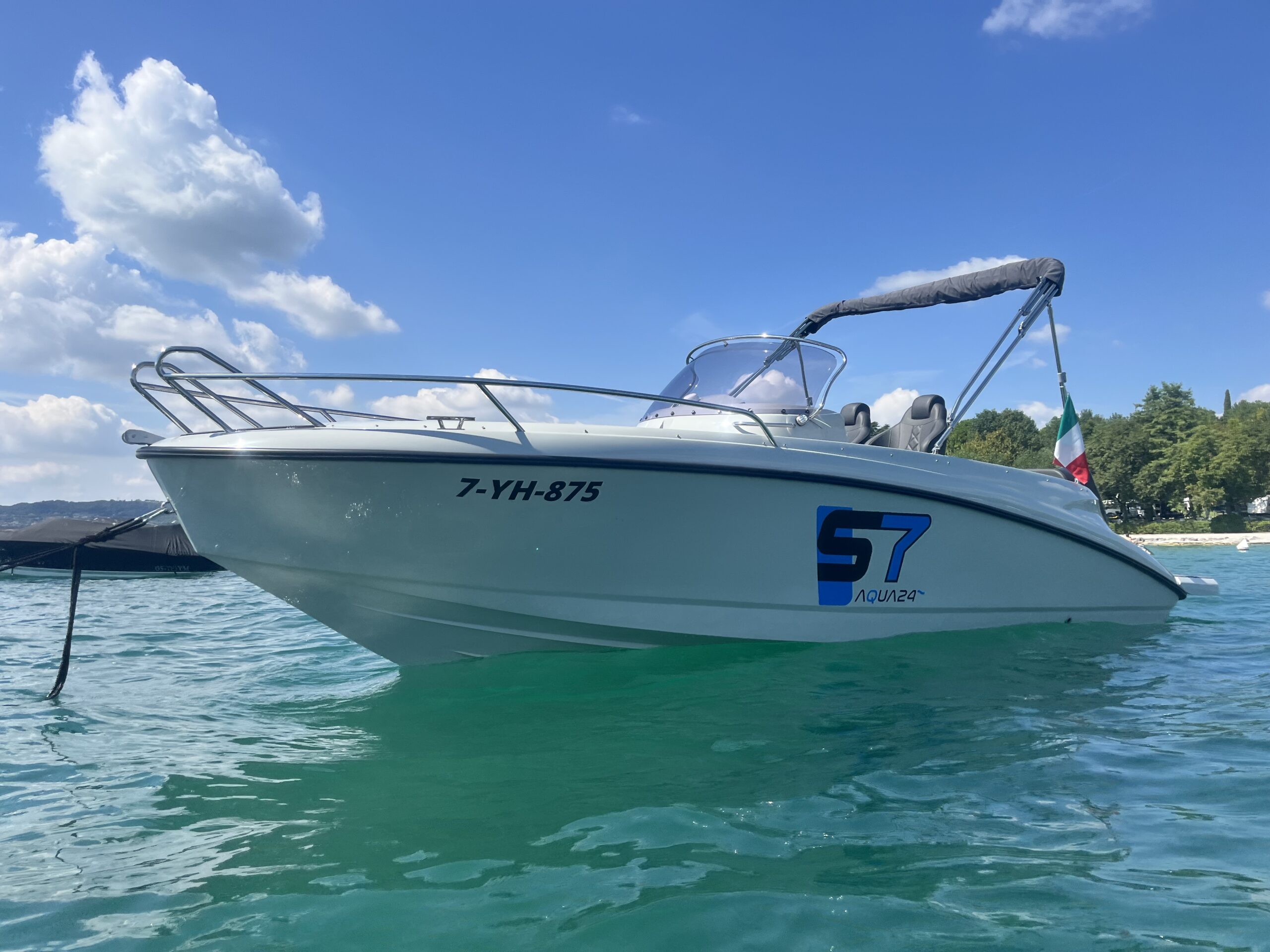 Door de sterke bouw en het goede onderwaterschip kan er tot wel 150 PK achter de Aqua24 S7. Hiermee bent u zeker als eerste op de plaats van bestemming.