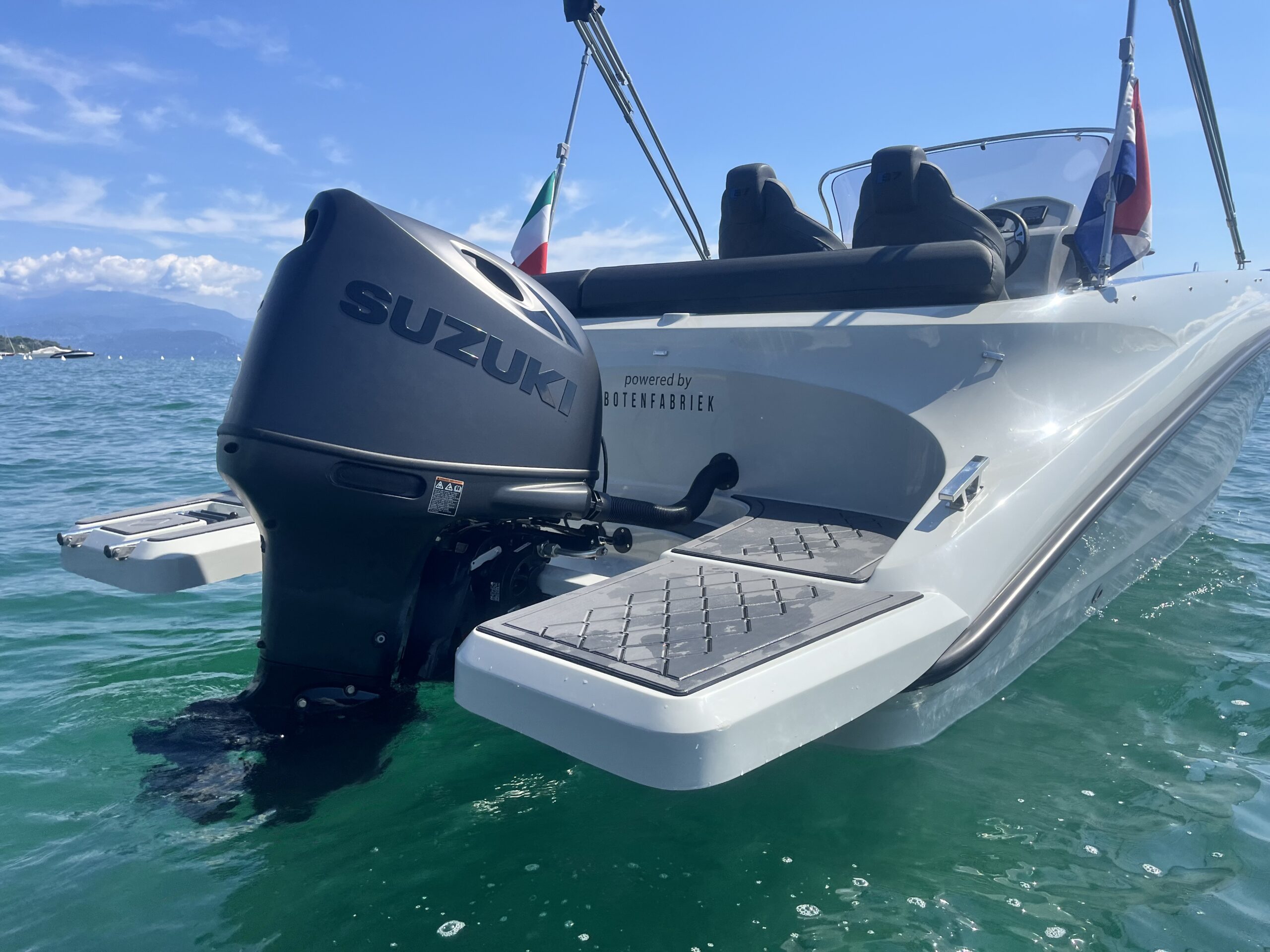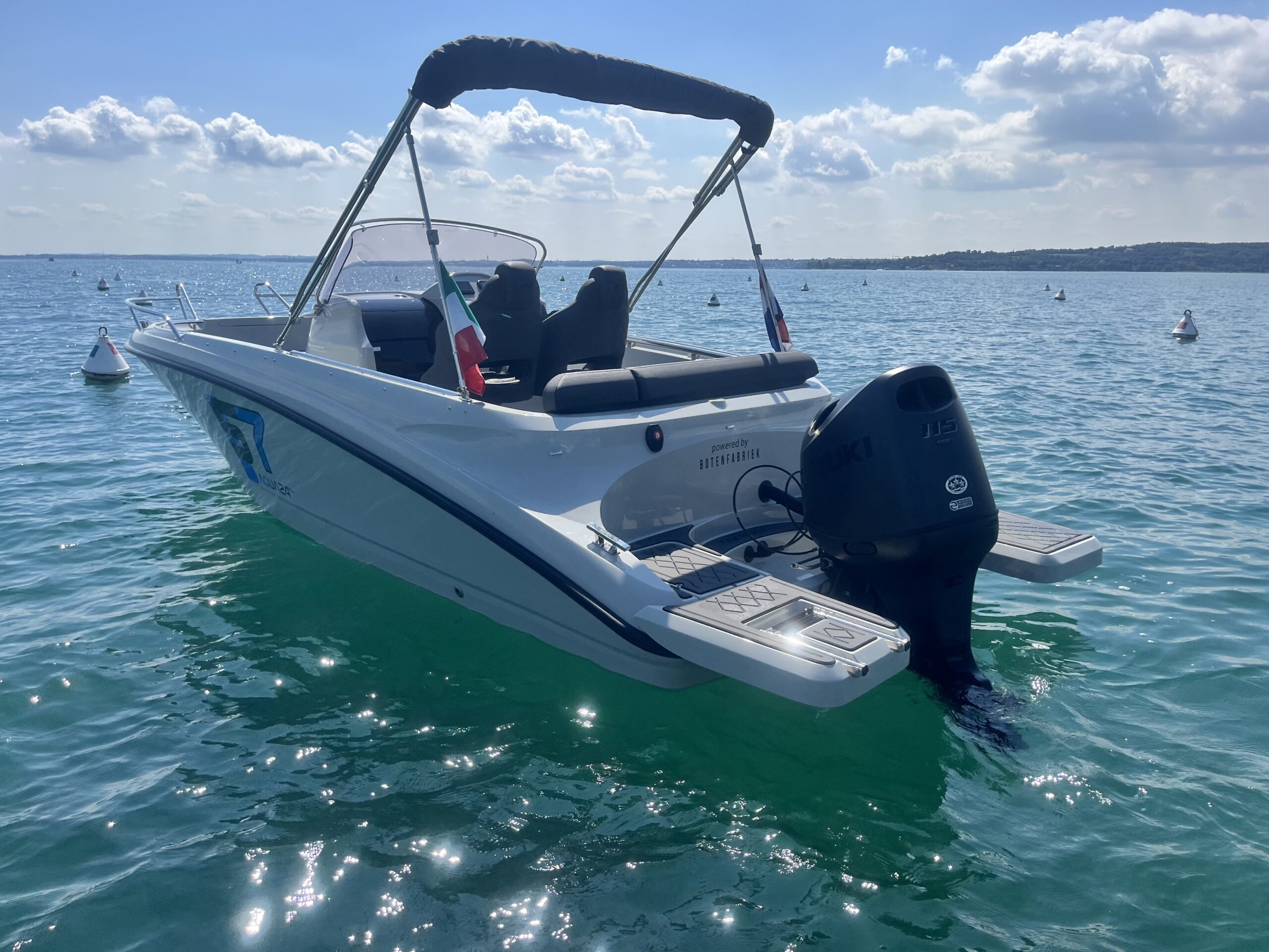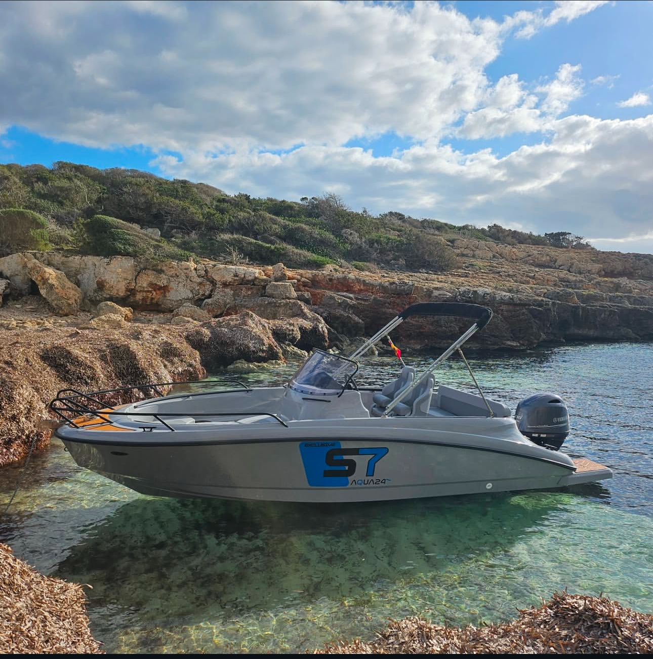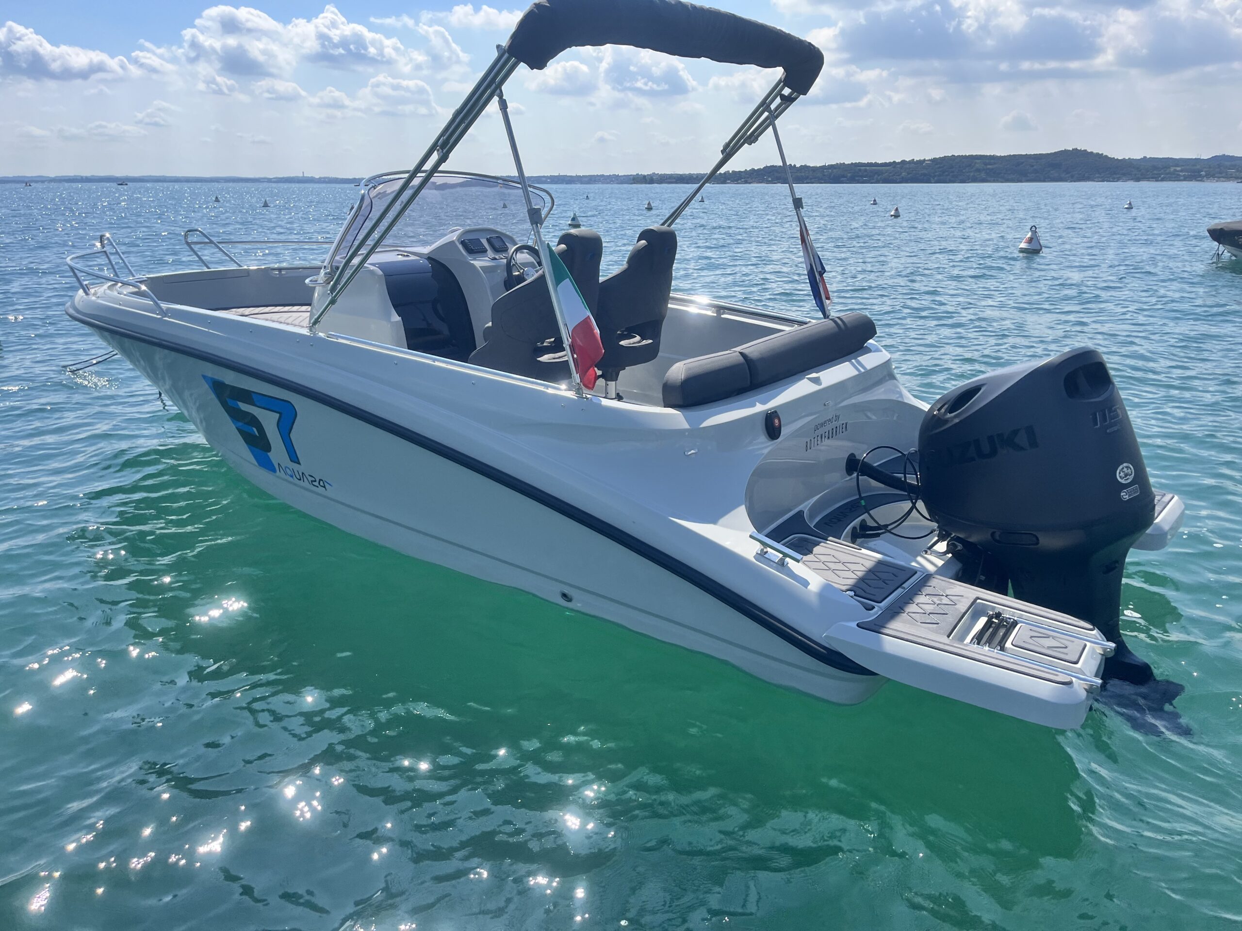 Door de sterke bouw en het goede onderwaterschip kan er tot wel 150 PK achter de Aqua24 S7. Hiermee bent u zeker als eerste op de plaats van bestemming.