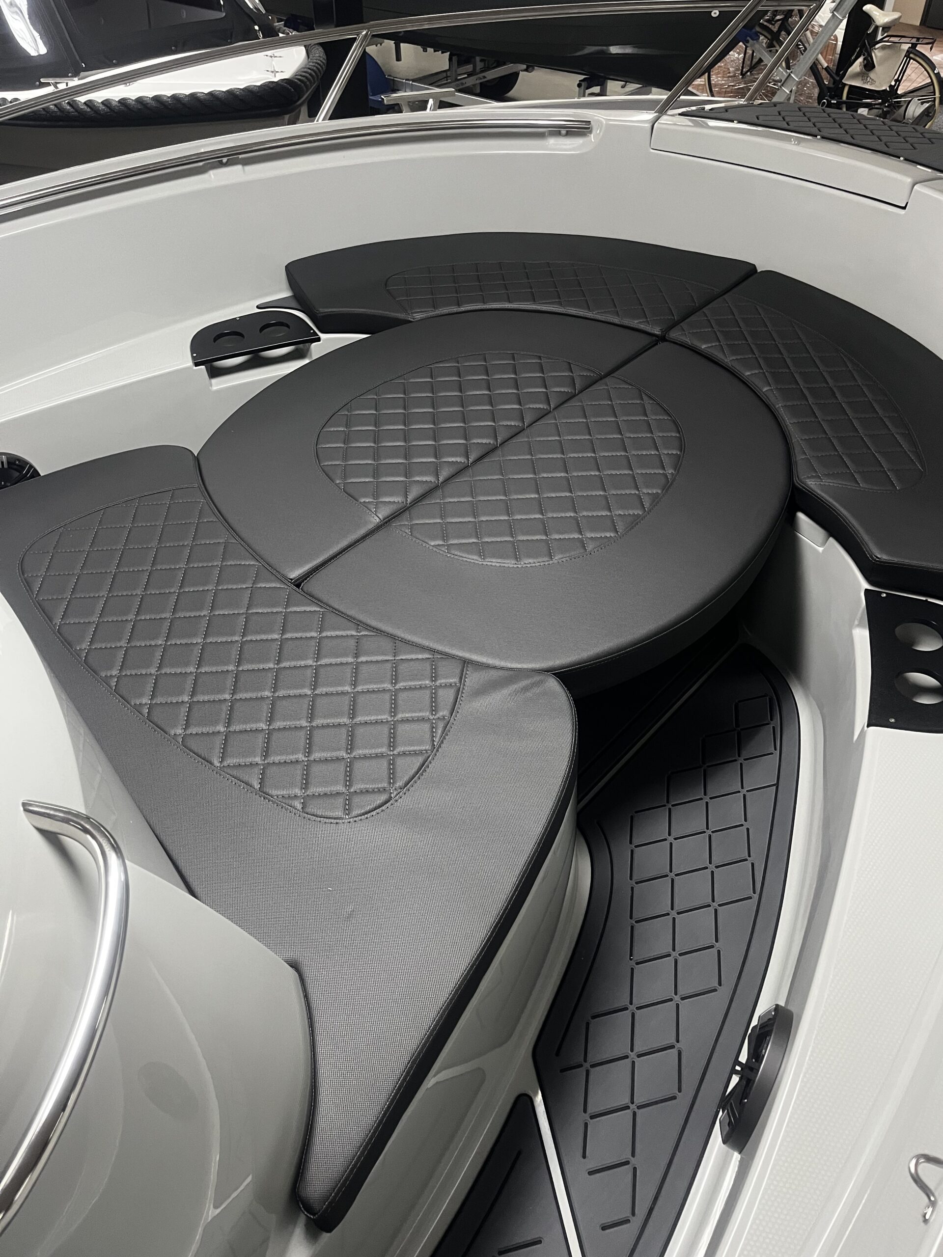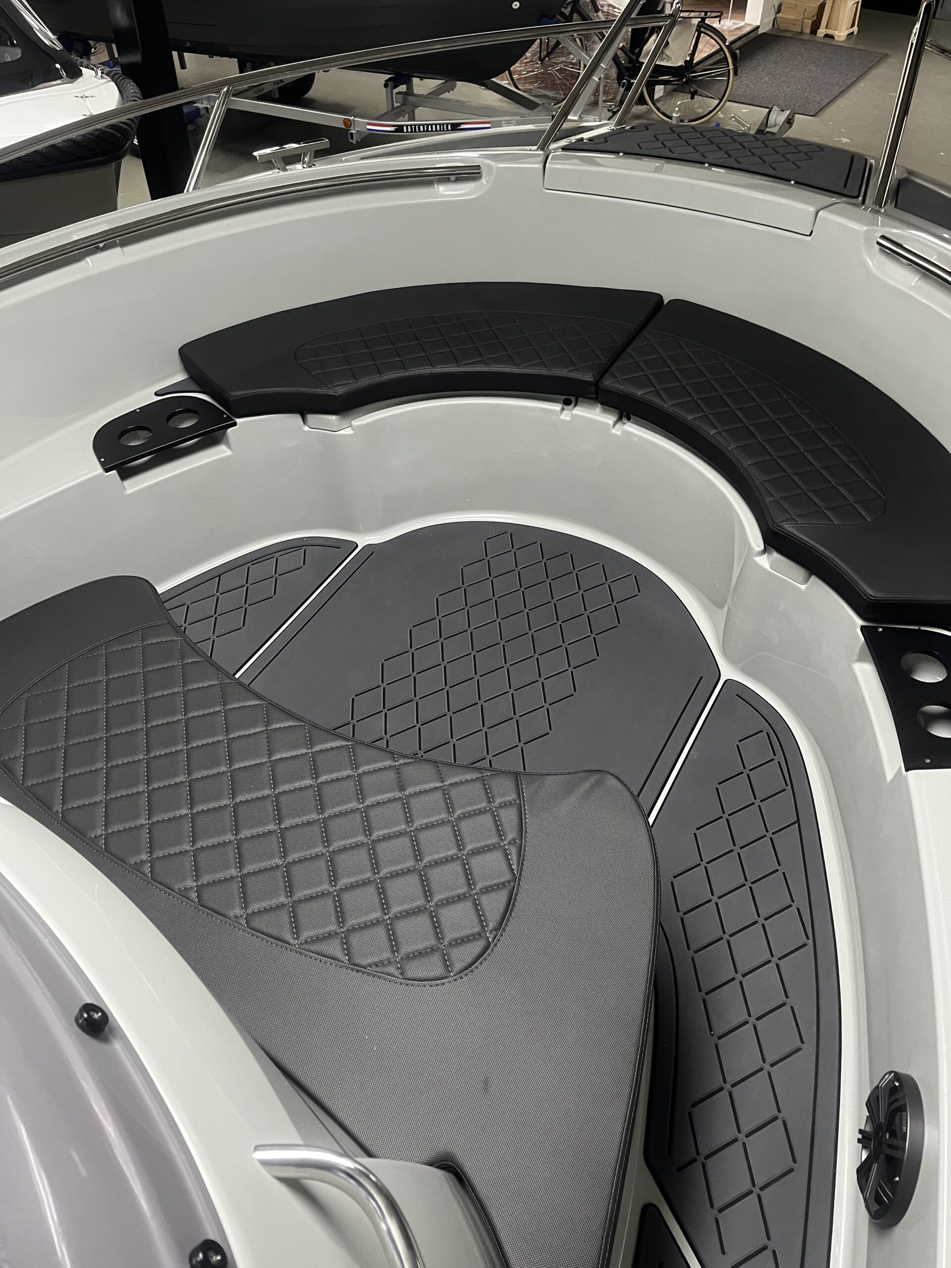 De Aqua24 S7 kan tot wel 8 personen aan boord nemen. Het ruime, optionele zonnedek voorin biedt genoeg ruimte aan om languit te liggen, maar zonder het zonnedek word de voorkant van de boot een gezellige rondzit met bekerhouders. De bestuurder en bijrijder zitten op, optioneel diamandgestikte, rondomdraaiende kuipstoelen.