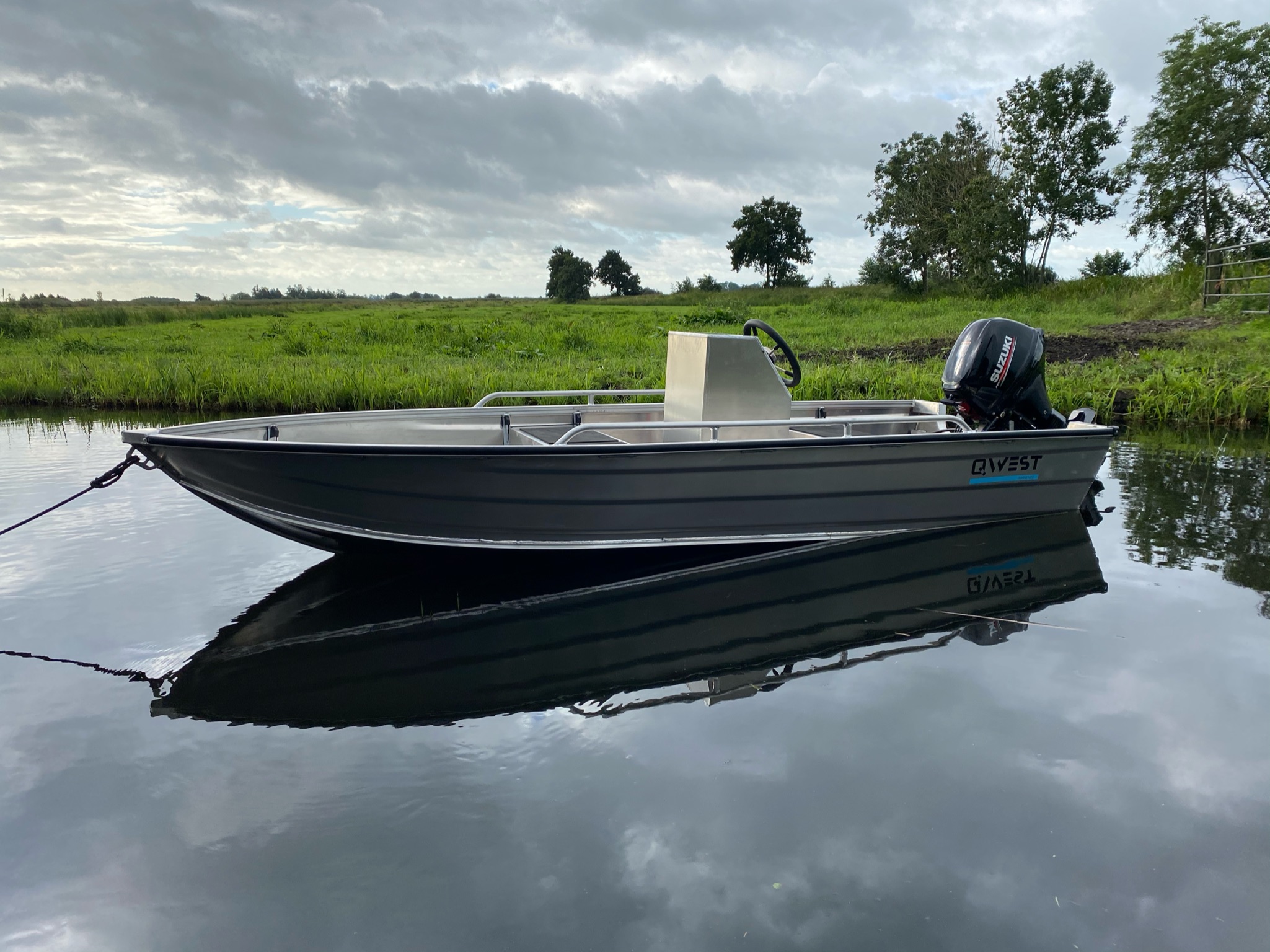 De Qwest B381 is een echte alleskunner. Door zijn vlakke traanplaat bodem is deze aluminium boot comfortabel en prima als toerboot of visboot te gebruiken. Geheel gelast, 2mm. aluminium maakt deze boot sterk en toch licht en handelbaar. De banken zijn met schuim gevuld. Met een kleinere benzinemotor komt hij al goed uit de voeten. Echter rusten wij hem ook vaak uit met bijvoorbeeld een ePropulsion of Minn Kota fluistermotor. Er gaat niets boven geruisloos varen door de natuurgebieden. Door het lage gewicht is hij op een boottrailer tevens goed handelbaar. De gehele B-serie is prijstechnisch doordacht en bijna onverslaanbaar. Wilt u meer informatie, of deze Qwest modellen komen bekijken op onze showroom bent, u van harte uitgenodigd in Elburg.