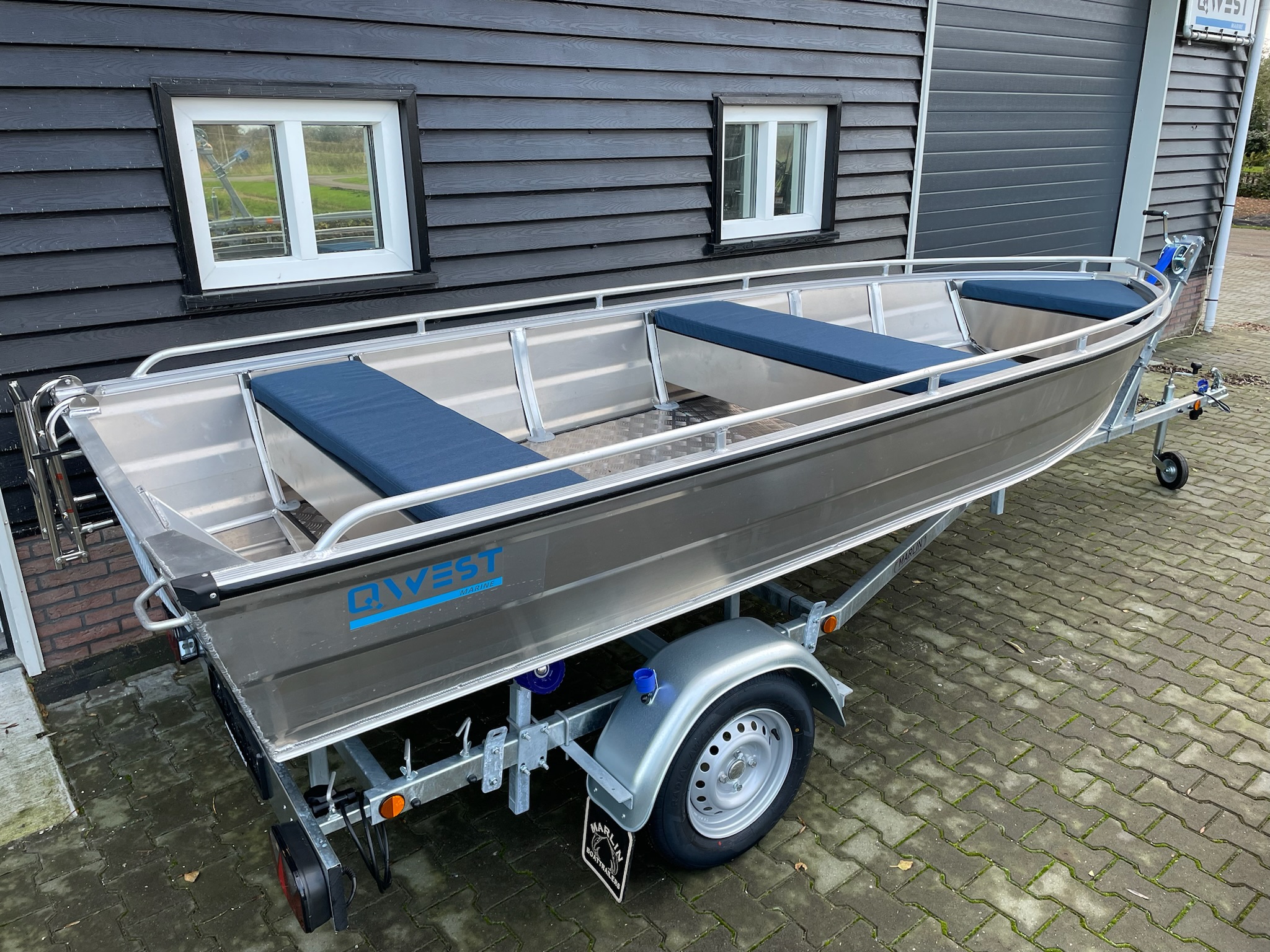 De Qwest B421 is de grootste in de B-serie met V bodem. Door zijn vlakke traanplaat bodem is deze aluminium boot comfortabel en prima als toerboot of visboot te gebruiken. De boot is sterk en robuust door de geheel gelaste 2mm. romp en de spiegel van 3mm profielen. Het is een zeer betaalbare basis om uit te breiden tot complete visboot. De banken zijn met schuim gevuld. Met een kleinere benzinemotor komt hij al goed uit de voeten maar u knt hem uitrusten tot wel 20PK.
