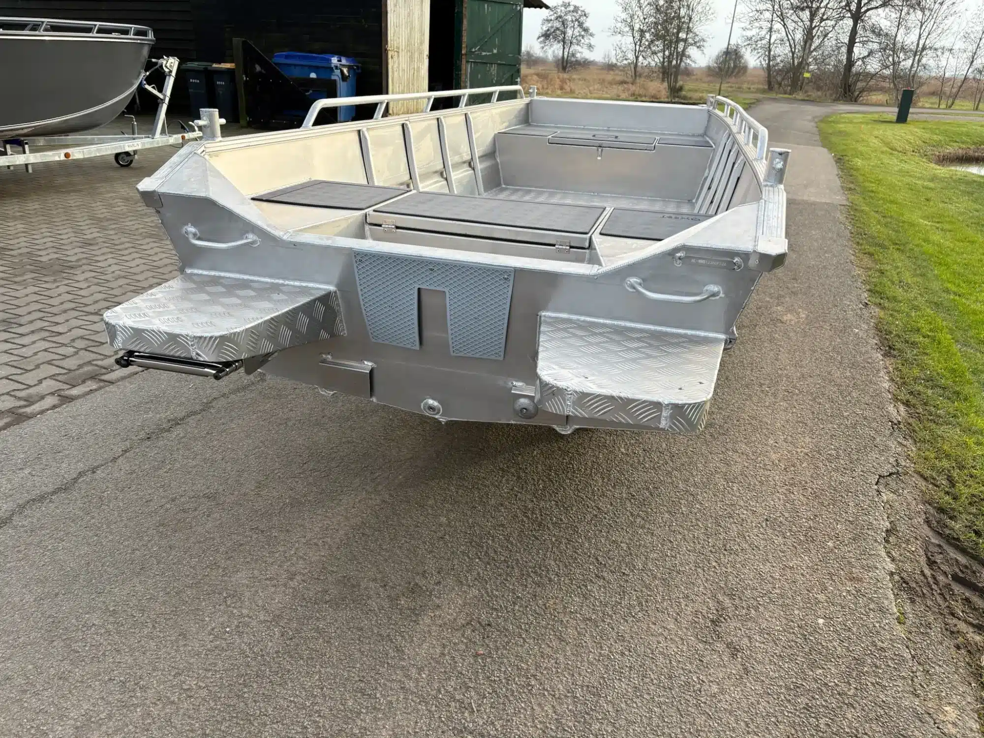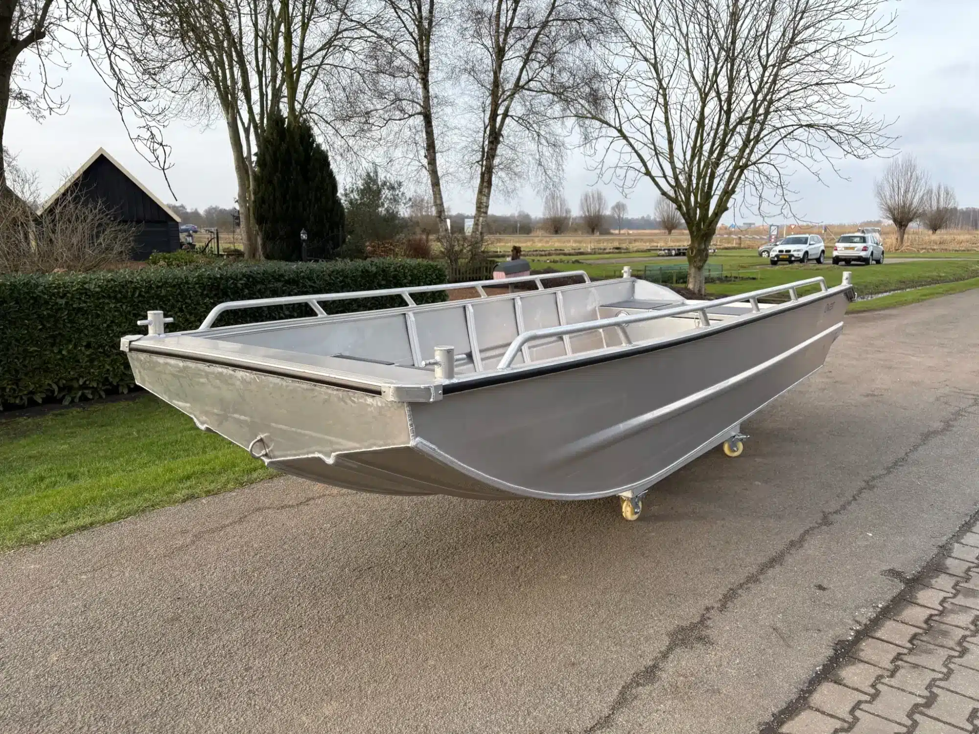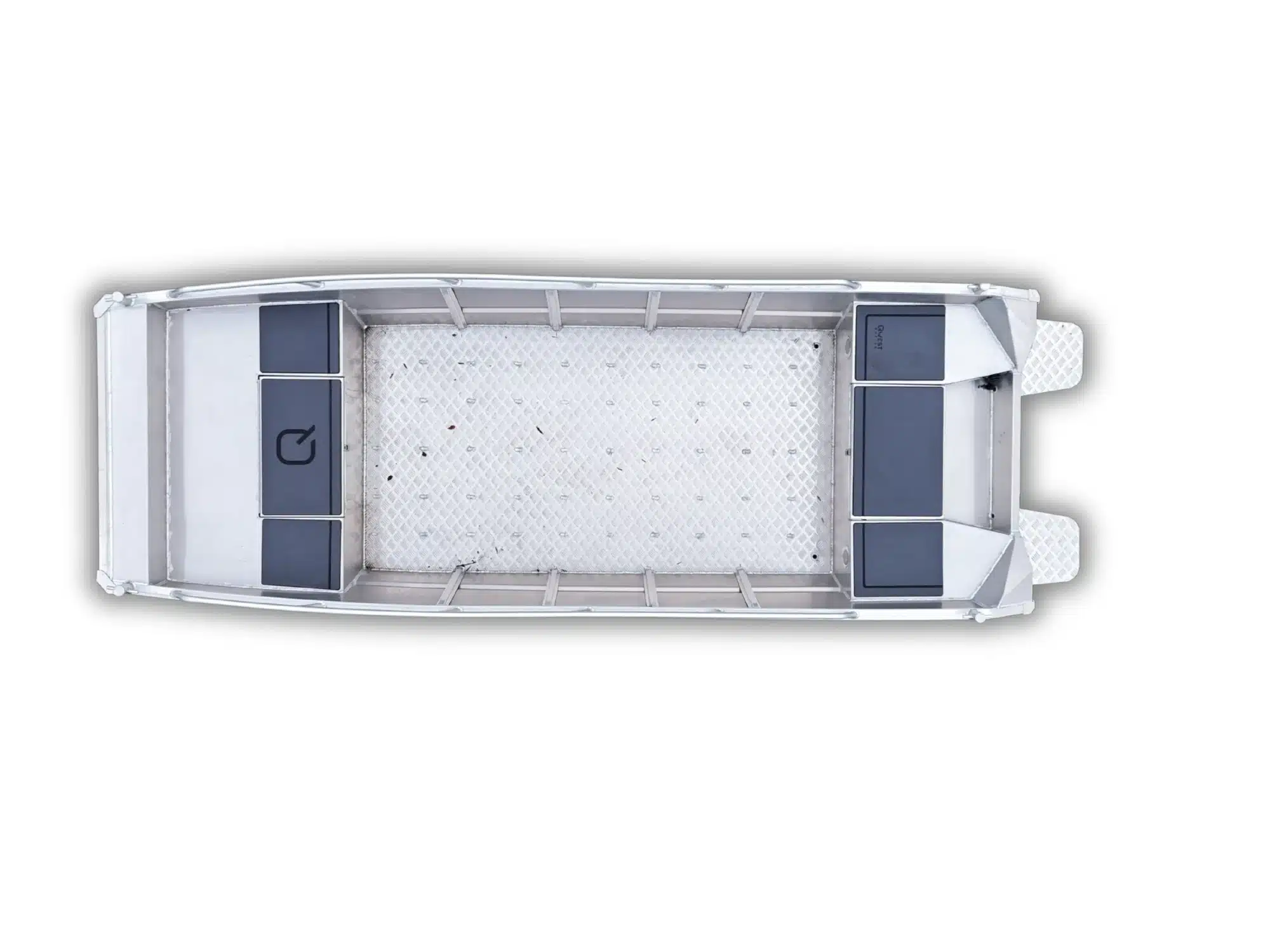 Deze Qwest heeft een geheel afgelaste constructie in 3mm. aluminium, luiken met gasveren, etc. De jon boot is koersvast en voelt erg stabiel aan door de breedte van het onderwaterschip. Dit is waarom deze jon boten erg geliefd als werkboten, maar ook perfecte toerboten zijn! De boot zelf is dus gemaakt van 3 millimeter aluminium, maar heeft een afgelaste vloer en een spiegel van 4mm dikte, waardoor er een benzine motor van maar liefst 30PK achter kan.