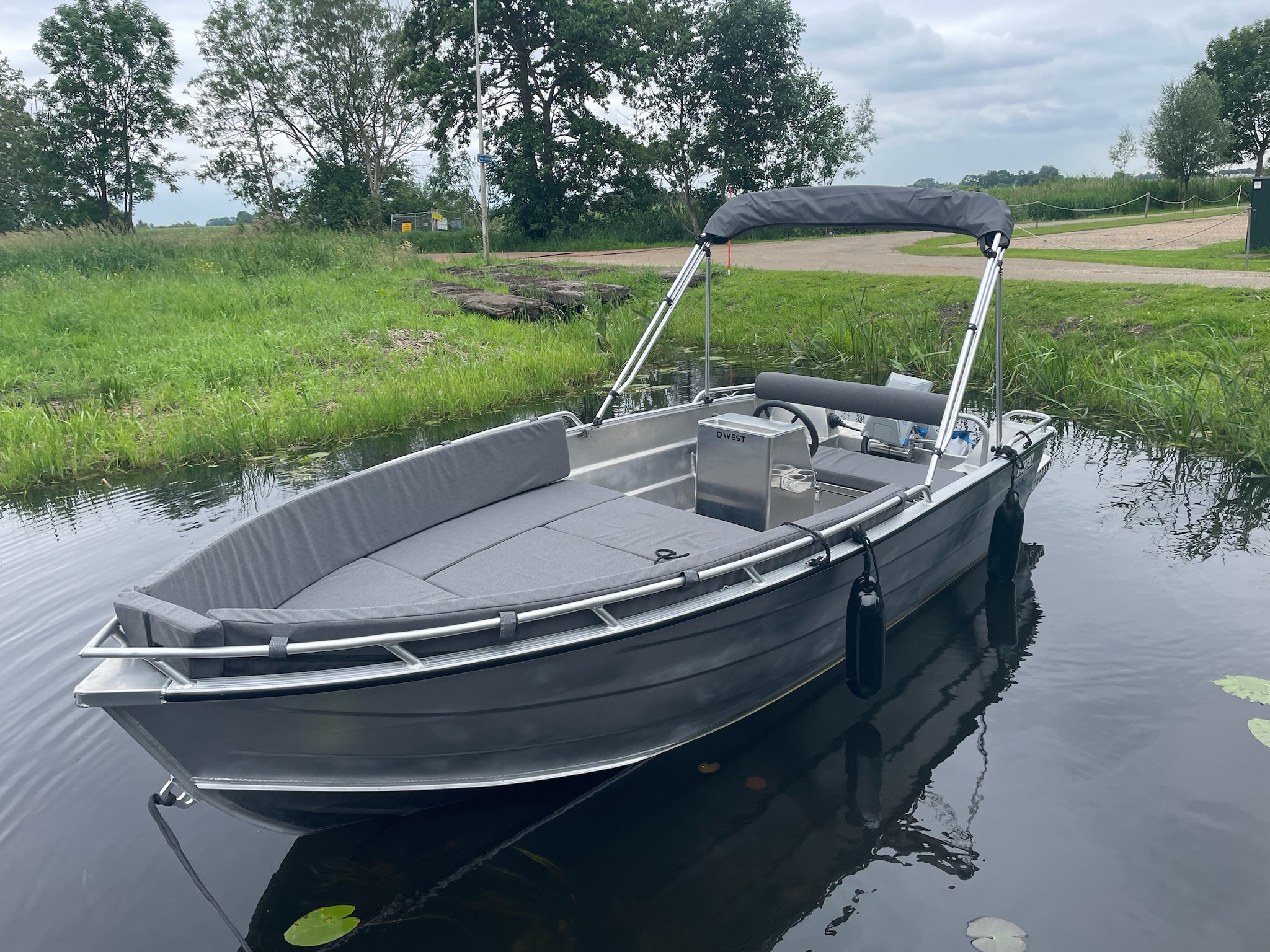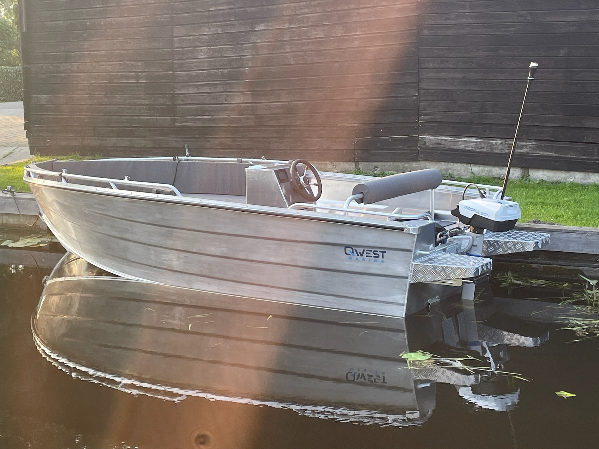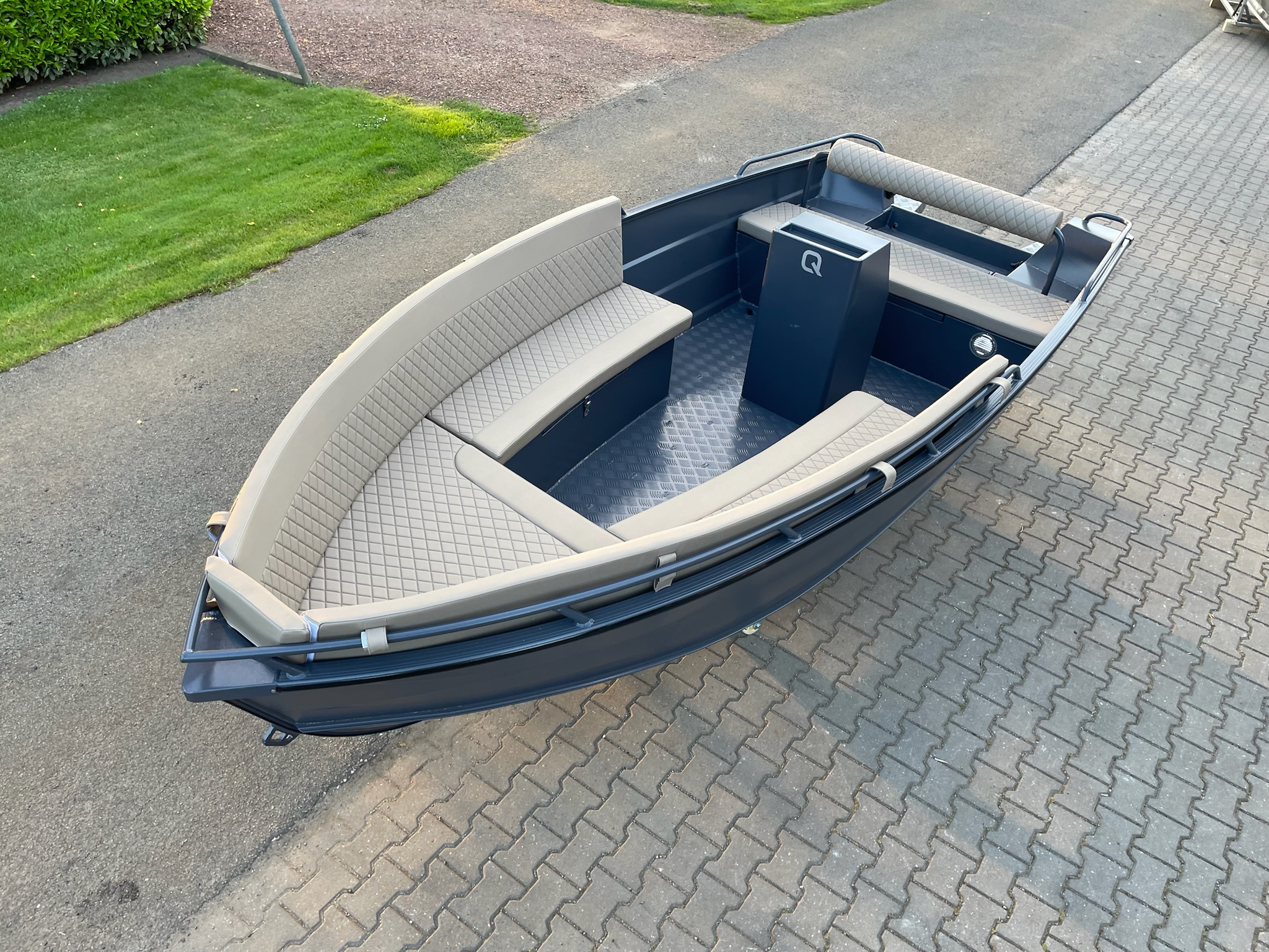 Één van onze hardlopers binnen de Qwest familie is de zeer complete Qwest R485 aluminium sloep. Deze uitvoering komt standaard met o.a. zwemplateau’s, zwemtrap, kussenset en console. Door zijn goede romp heeft hij zeer goede vaareigenschappen en is het door zijn rondzit en opbergruimte een fijn familieboot en een echte allemansvriend. De boot is van 4mm. gelast aluminium, zelflozend en de vloer ook 4mm, voorzien van een traanplaat. Zowel elektrisch varen als buitenboordmotoren t/m 50PK zijn mogelijk en maken deze Qwest zeer flexibel in afmontage. Op een ongeremde boottrailer is ook deze boot makkelijk te vervoeren. De R485 aluminium sloep is net als vele andere modellen bij ons in de showroom te bekijken en graag informeren wij u hier verder.