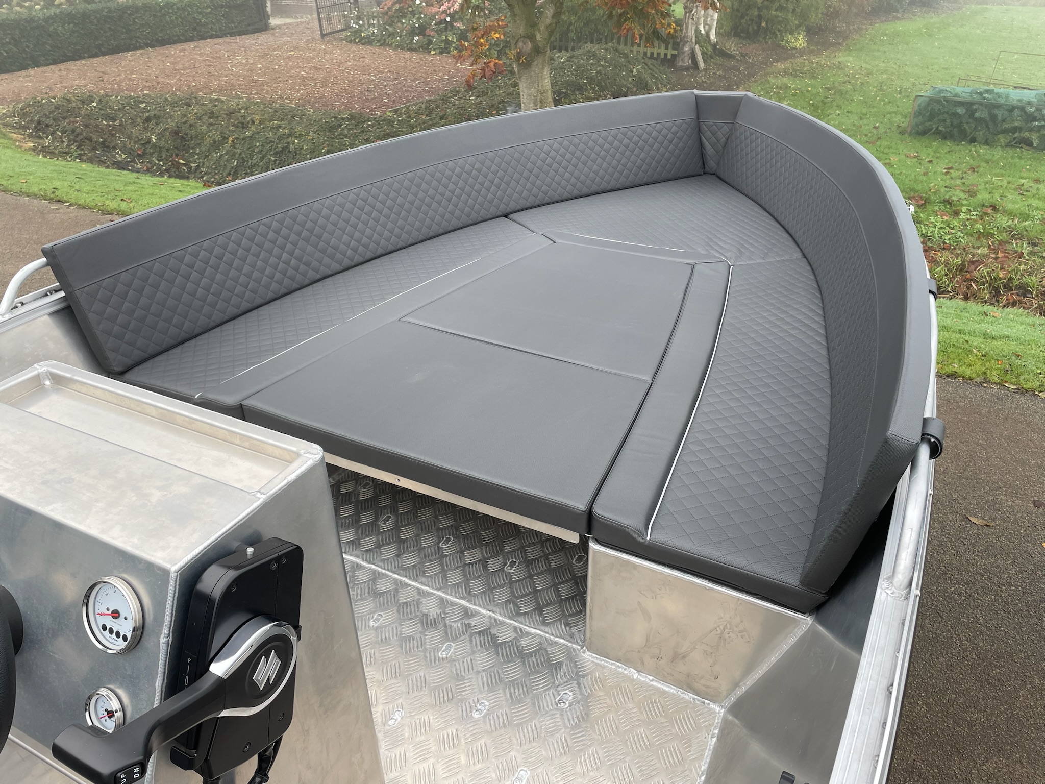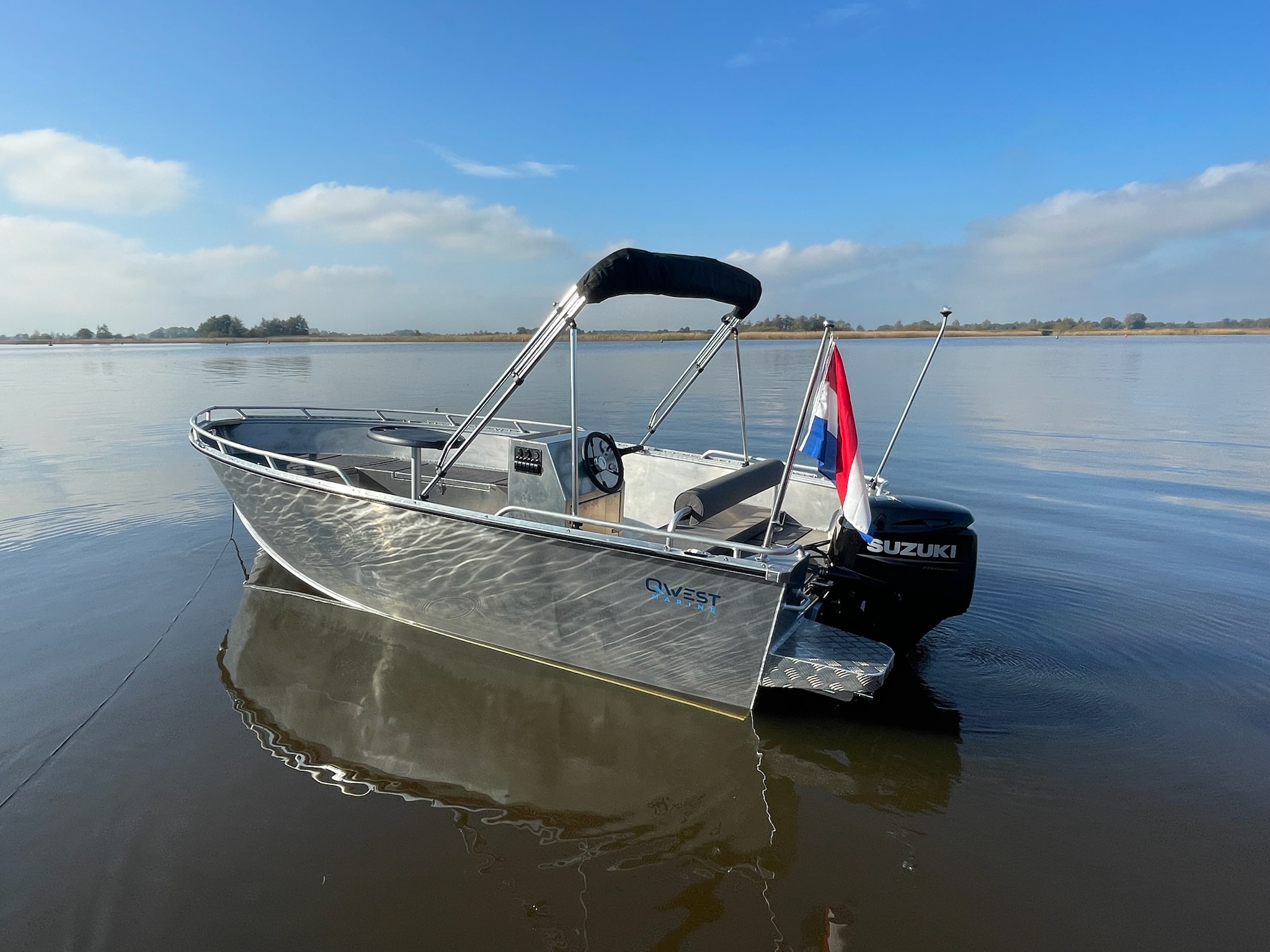 De Qwest R535 is voor zo’n complete aluminium boot een logische keuze i.v.m. gebruiksgemak (zelflozend), duurzaamheid, prijsklasse en verrassende vaareigenschappen. Deze robuuste Qwest heeft standaard een 4mm. gelaste V-romp en is door zijn breedte van 2,10 mtr enorm stabiel. De R535 komt standaard met o.a. zwemplateau’s, zwemtrap, kussenset en console. Veel opbergruimte, een ruime rondzit en uit te voeren tot wel 80PK maken hem een perfecte familieboot. Als optie is hij te krijgen in geheel antraciet en / of met luxe capitone kussens. Dit geeft deze Qwest R535 een geheel andere uitstraling. Wilt u een hele andere kleur romp? Dan is bij ons laten wrappen in kleur naar keuze ook een optie! De R535 is net als vele andere modellen bij ons in de showroom te bekijken en graag informeren wij u hier verder.